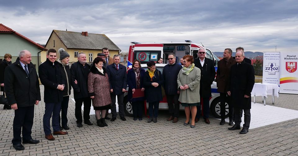 Karetka marki Volkswagen Crafter  z najnowocześniejszymi noszami elektrycznymi systemu power load, które mają udźwig ponad 300 kg, a więc spełniają funkcję noszy bariatrycznych, video-laryngoskop oraz przenośny aparat USG została dziś poświęcona i przekazana wadowickiej lecznicy przez m.in. wicewojewodę małopolskiego Zbigniewa Starca, przedstawicieli samorządu powiatowego, gminy Kalwaria Zebrzydowska oraz dyrektora i pracowników wadowickiego szpitala. Całkowity koszt to 519 251,84  zł. Pieniądze na ten cel pozyskano z dotacji z Ministerstwa Zdrowia, budżetu powiatu  i ZZOZ.  Wyposażenie karetki pokrył samorząd gminy Kalwaria Zebrzydowska – 40 tys. zł.