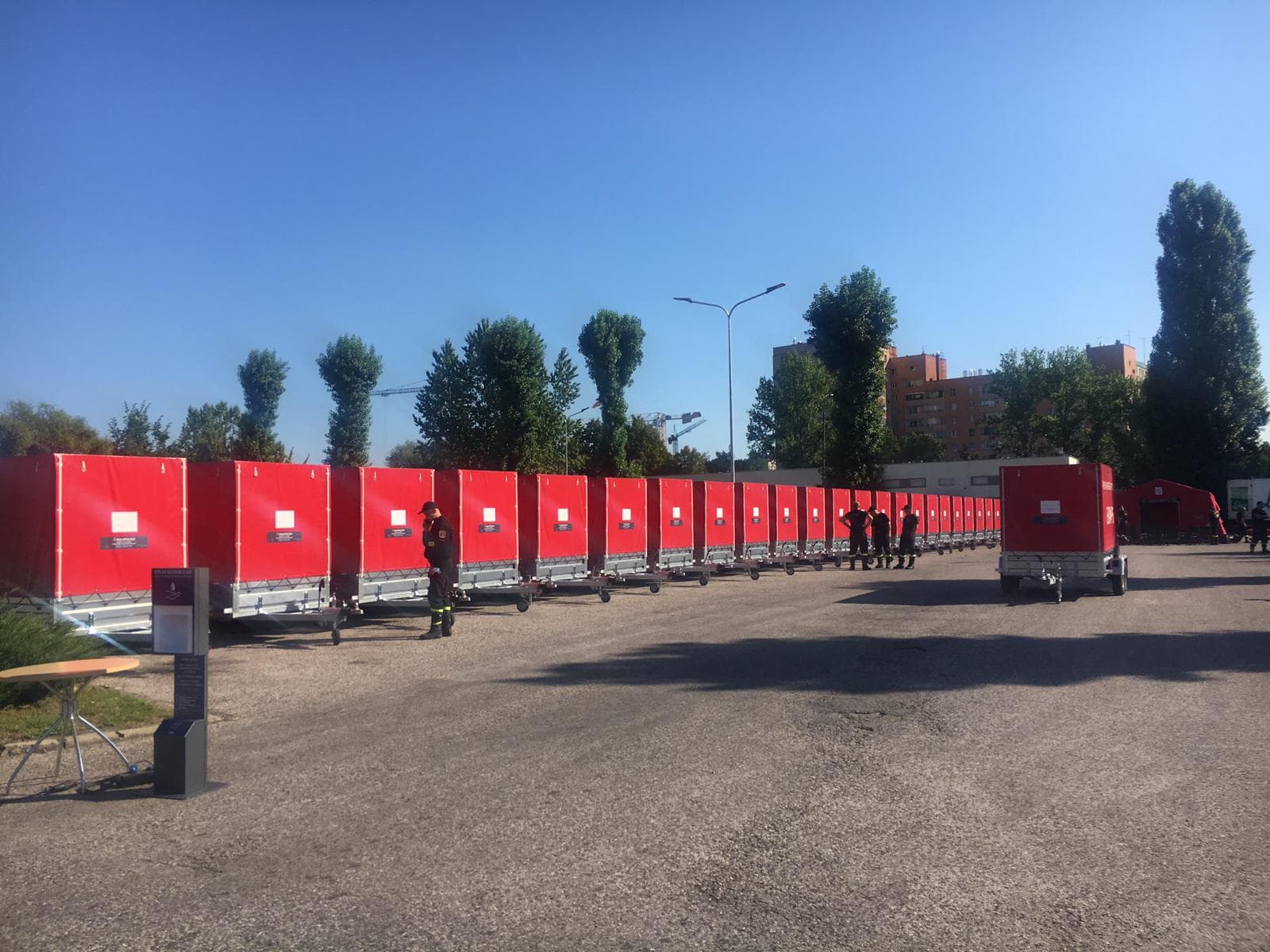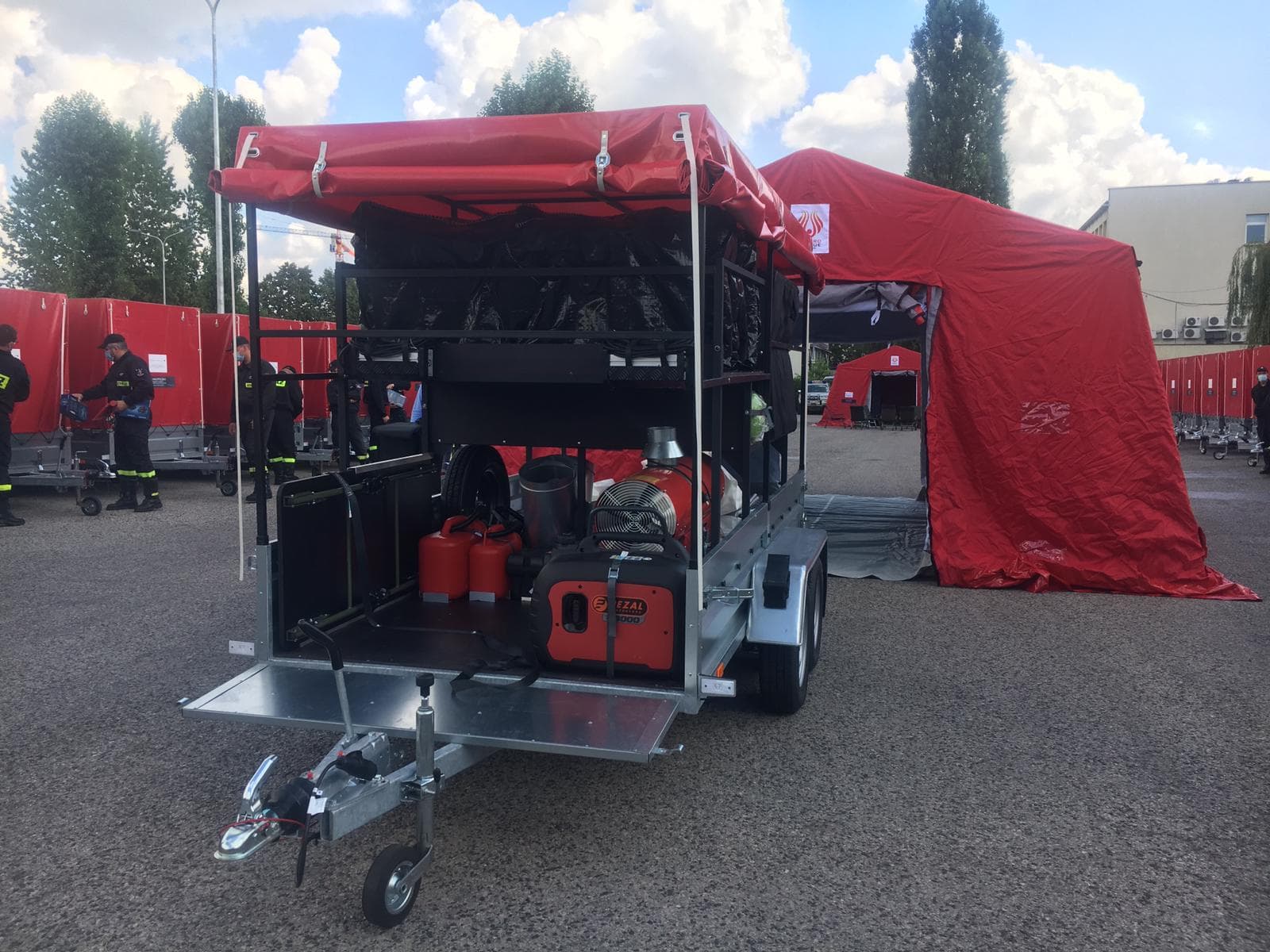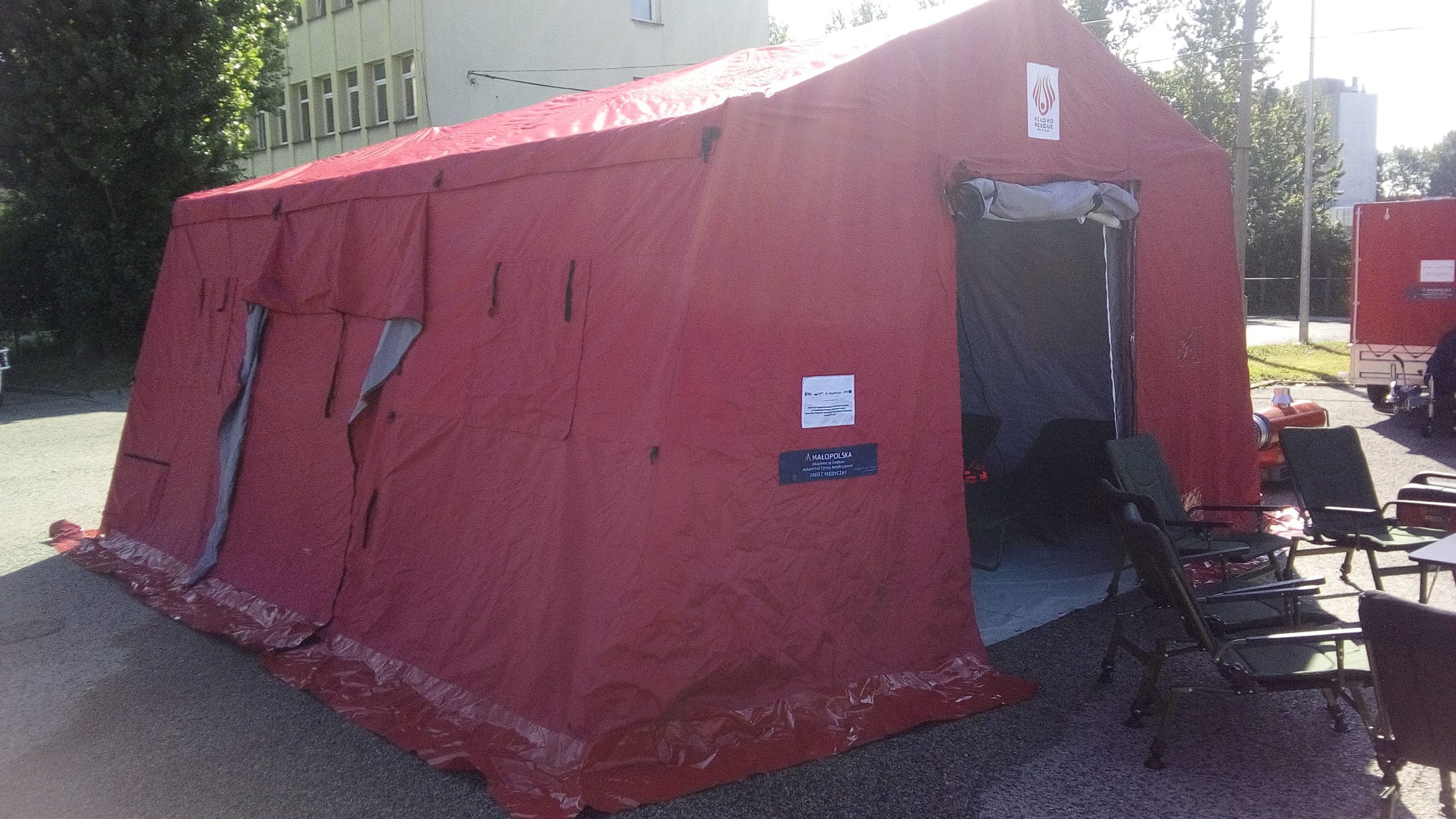 Bardzo dobry początek ostatniego tygodnia sierpnia dla kilkunastu jednostek z naszego powiatu. W poniedziałek na placu przed Jednostką Ratowniczo-Gaśniczą nr 5 Komendy Wojewódzkiej Państwowej Straży Pożarnej w Krakowie wicemarszałek Łukasz Smółka przekazał małopolskim strażakom 50 specjalnych namiotów, które ułatwią prowadzenie działań związanych z walką z COVID-19. Sprzęt został sfinansowany z Małopolskiej Tarczy Antykryzysowej. Skład jednego takiego namiotu będzie wchodzić: przyczepa transportowa, agregat prądotwórczy, nagrzewnica olejowa, 10 łóżek polowych, 10 foteli/krzeseł składanych, stolik polowy oraz śpiwory.