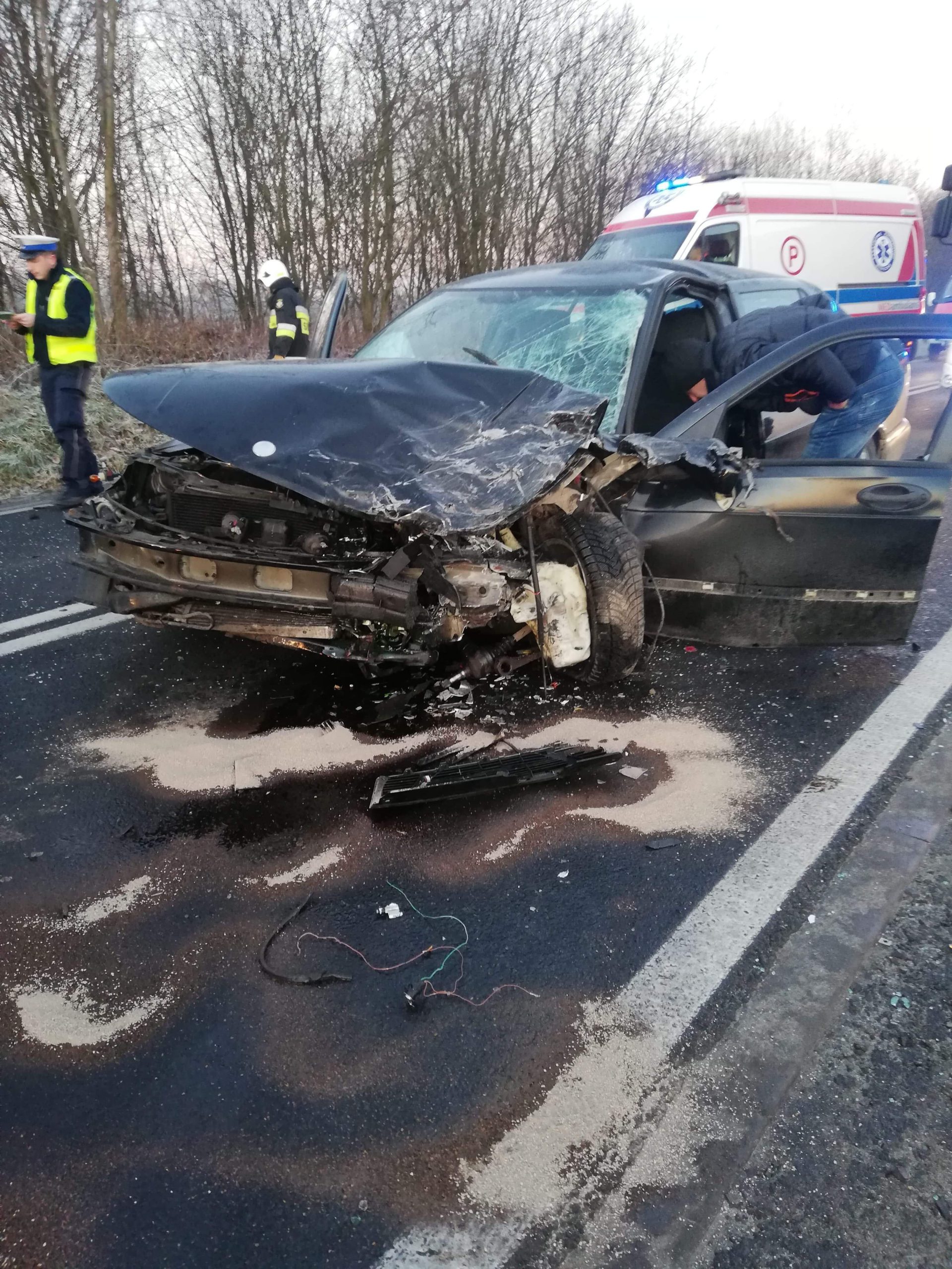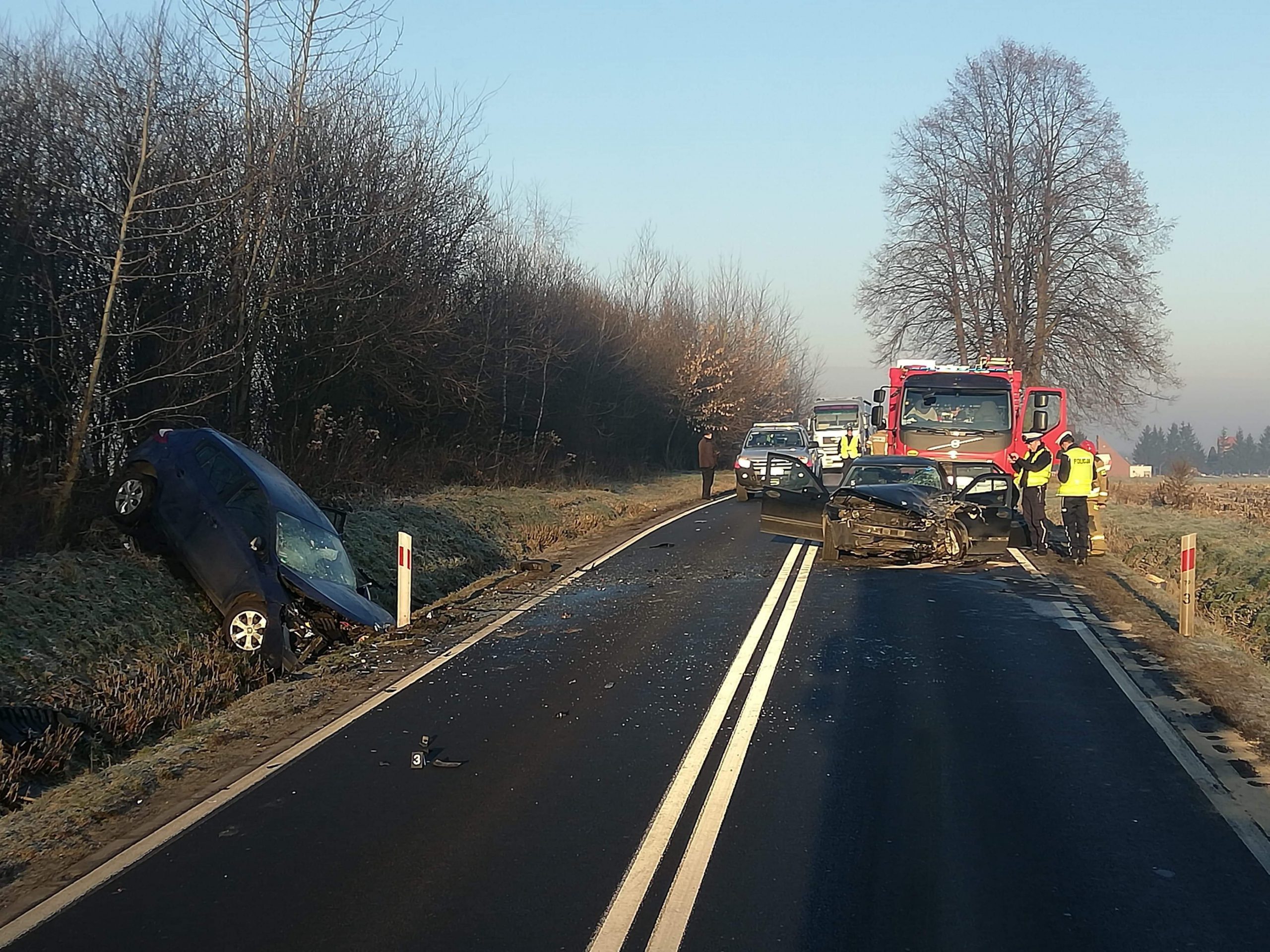 Jak wynika że wstępnych ustaleń policji, kierujący jednego z pojazdów podczas manewru wyprzedzania zderzył się z innym pojazdem.